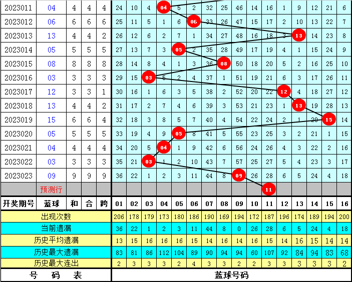 本期蓝球柔和:10、11、13、15。重点柔和:11、15。
