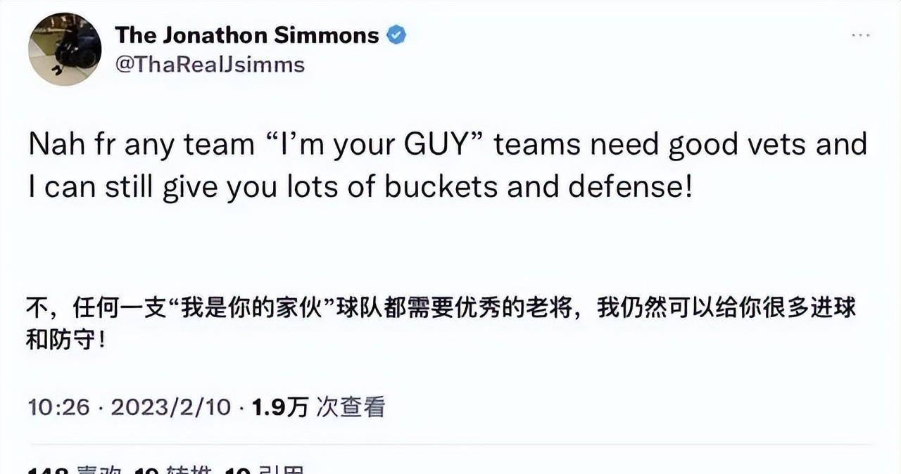 同期当今山西队的短板等于锋线外助威姆斯施展不踏实,急需西蒙斯追思球队,在得分上来匡助球队。